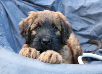 Er geht schon in die Hundeschule und betätigt sich in Garten und Haus.