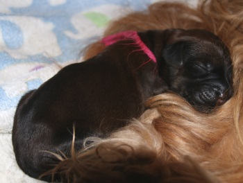 Wir machten uns also auf dem Weg zu unserer Tierärztin - das tun wir immer nach abgeschlossener Geburt, zur Sicherheit - und mussten dort hören, dass sich da immer noch ein Welpe auf die große weite Welt freut...