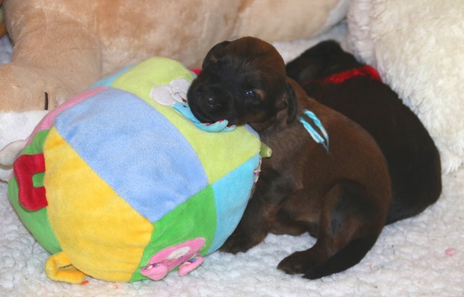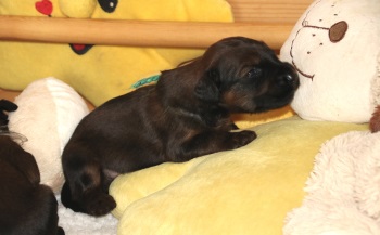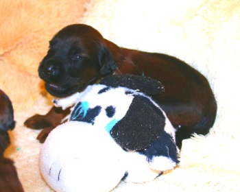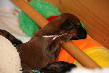Da wird bereits "gebellt" na oder so ähnlich, geknurrt, genuckelt, sich geräkelt und immer wieder gekuschelt. Zazou liegt selten länger in der Wurfkiste weil, immer wenn sie diese betritt, 10 hungrige Mäuler - und die sind IMMER hungrig - über sie herfallen. Da heisst es Ordnung in das Chaos bringen - immer nur 5 gleichzeitig trinken lassen und dann wechseln.