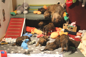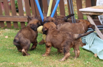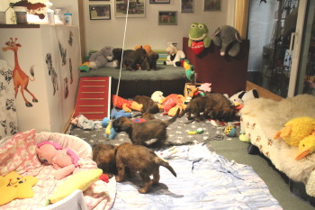 Diese zeigten sich unbeeindruckt von den Untersuchungen und werden von Tag zu Tag aktiver. Sie genießen ihr Leben und wir genießen wenn wir ihnen zusehen - was leider viel zu selten war in den letzten Tagen - die Welpen. Sie machen einfach gute Laune und wir möchten noch gar nicht an Abschied denken.