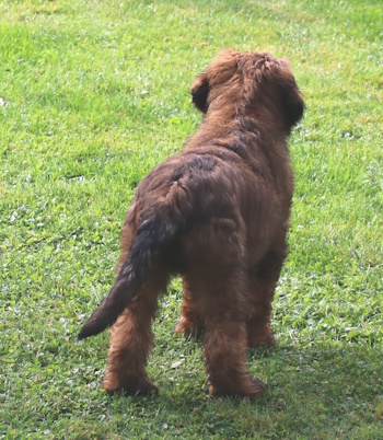 Er geht schon in die Hundeschule und betätigt sich in Garten und Haus.